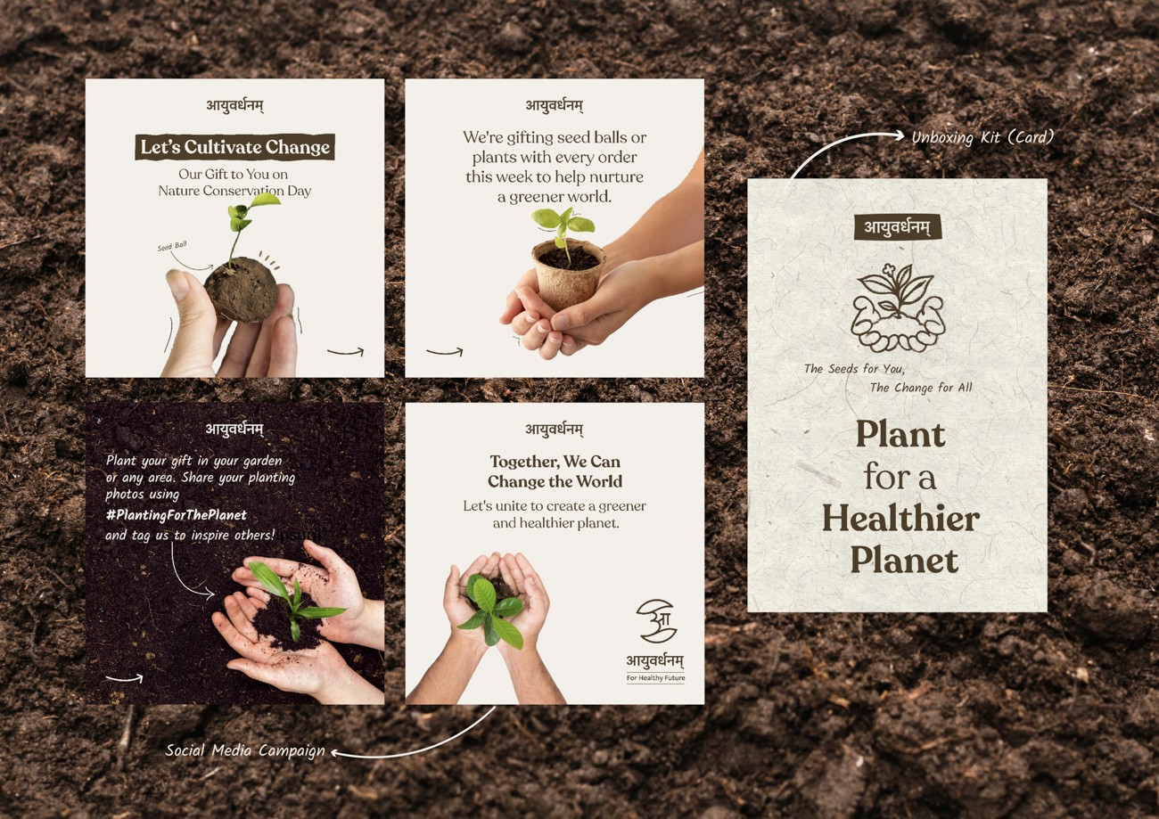 From all our strategic insights and brand truths, we arrived at a simple yet powerful tagline: “For a Healthy Future.” This line encapsulates the very essence of Aayuvardhanam. Every aspect of the brand from the way the products are grown, to how they’re packaged, consumed and the values they promote contributes to a future that is healthier for individuals, farmers and the planet. The tagline unites the brand’s purpose into a forward-facing message that’s hopeful, inclusive and deeply rooted in intent.