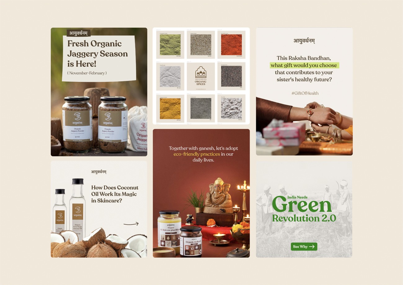 What followed were story-led, values-driven campaigns rooted in culture, honesty, and simplicity a reflection of everything Aayuvardhanam stands for. Here are a few highlights from the campaigns we proudly brought to life.