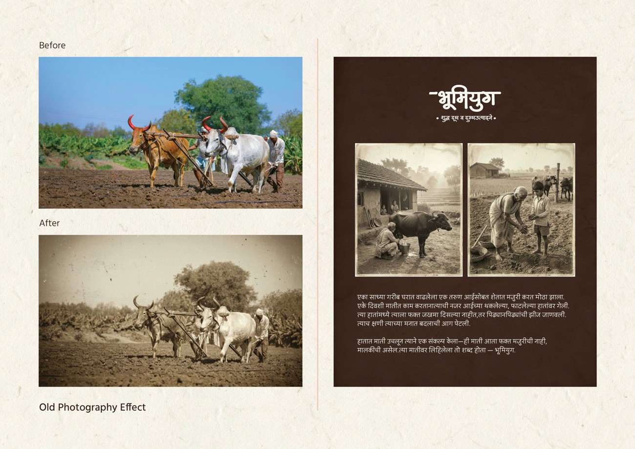 The photographic direction prioritizes emotional truth over studio perfection. We utilized natural light and authentic rural environments to capture the unfiltered beauty of Maharashtra, rejecting artificial polish in favor of honest storytelling.