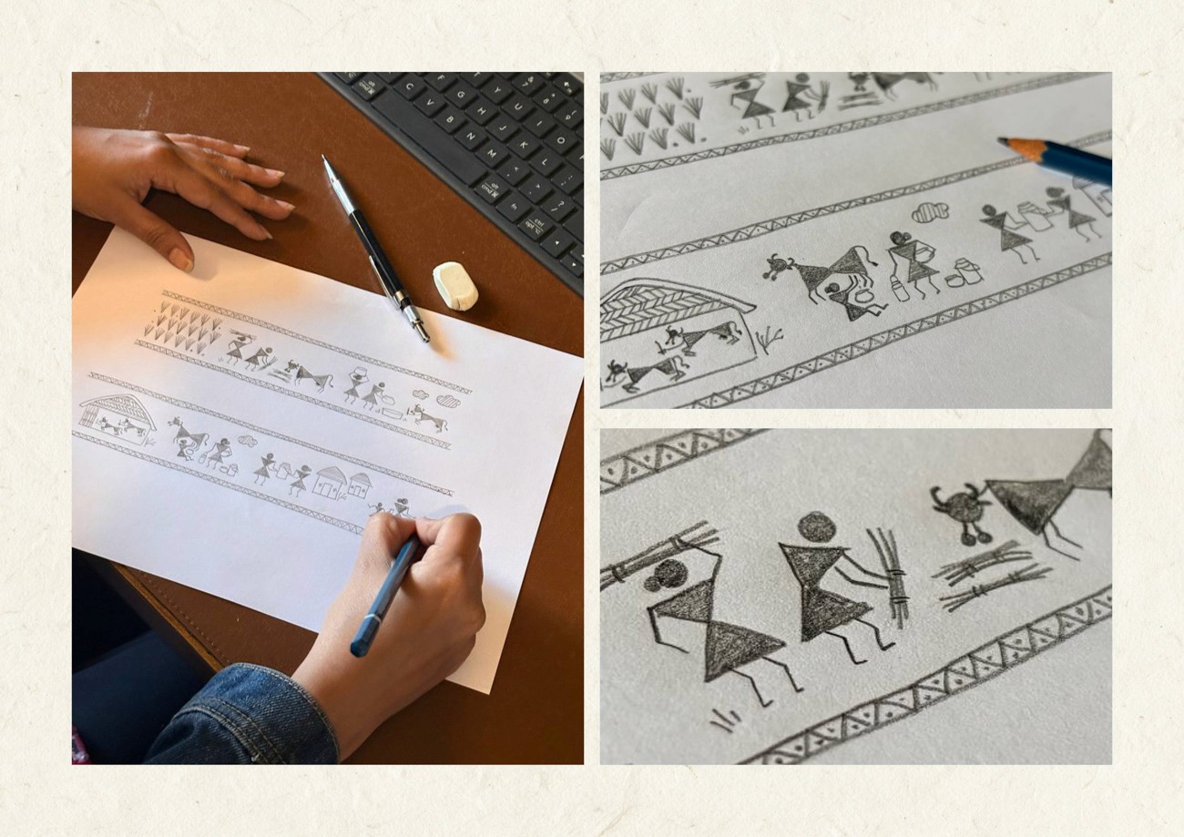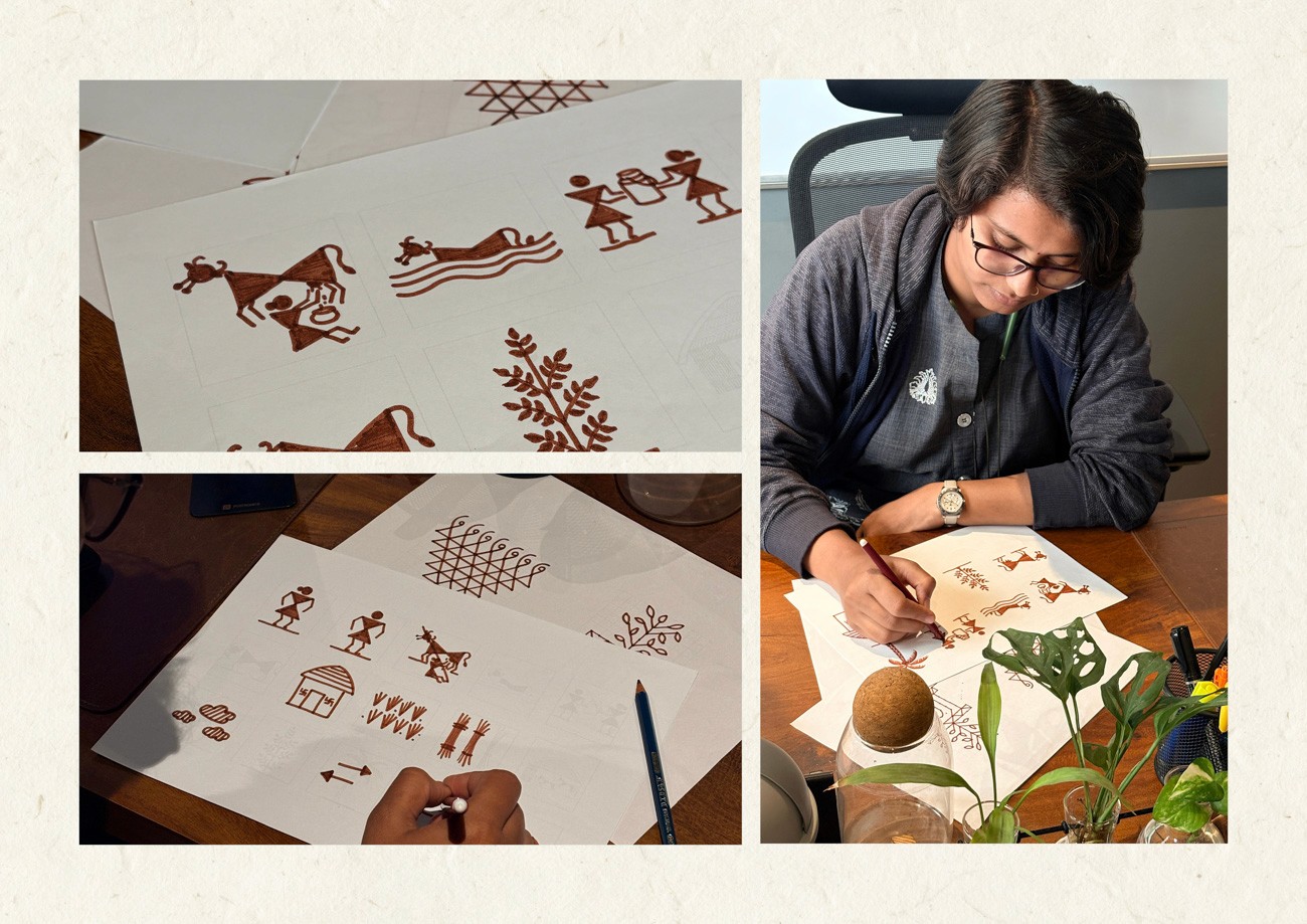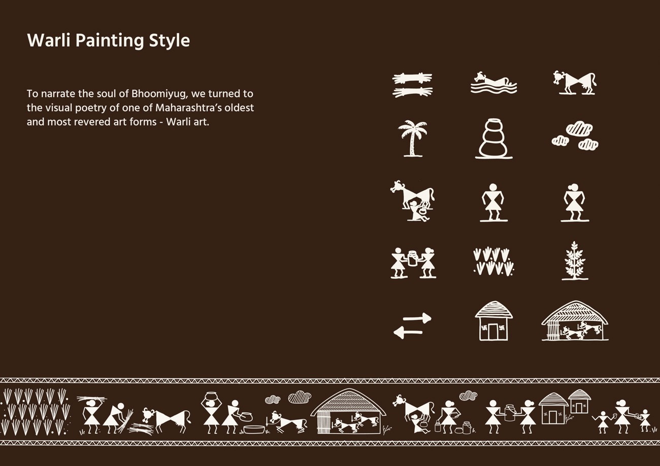 The iconography system functions as a cultural language rooted in Warli art and the minimalist geometry of mud-plastered walls. The design team cultivated these forms to serve as narrative vessels rather than abstract symbols.