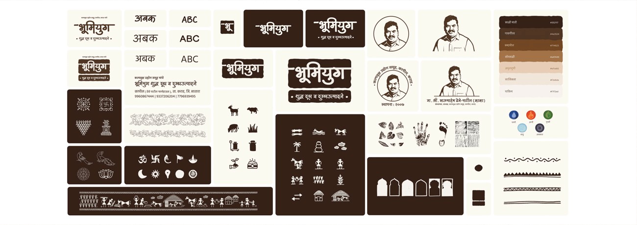 The illustration framework anchors the brand in the cultural landscape of Maharashtra. We developed a handcrafted visual language that captures the authentic rhythm of rural life and the geometry of nature.