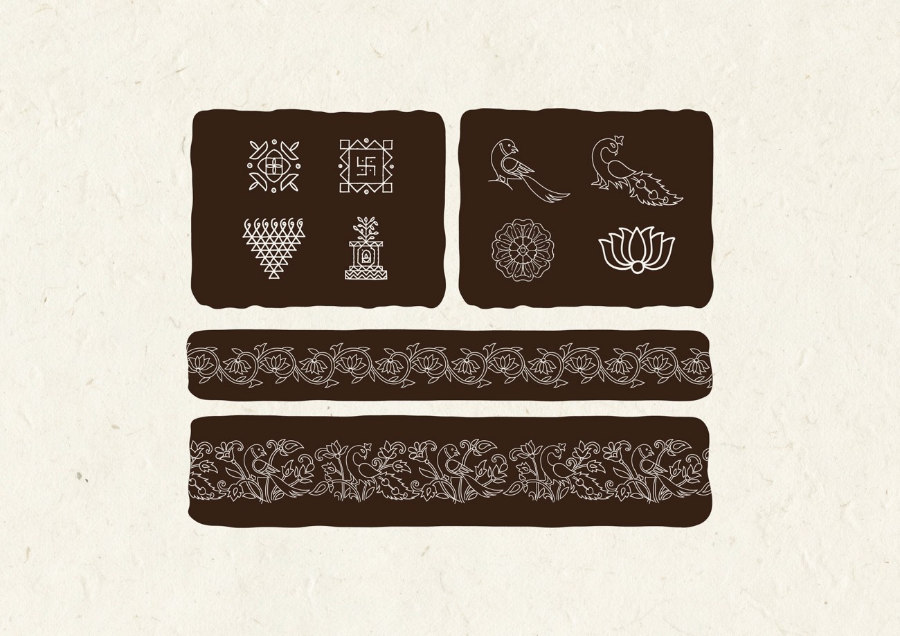 The visual language treats Maharashtrian culture as a functional design system rather than mere ornamentation. We sourced inspiration directly from regional environments temple carvings, ritualistic rangoli patterns, and the symmetry of Paithani borders to ground the brand in historical significance.